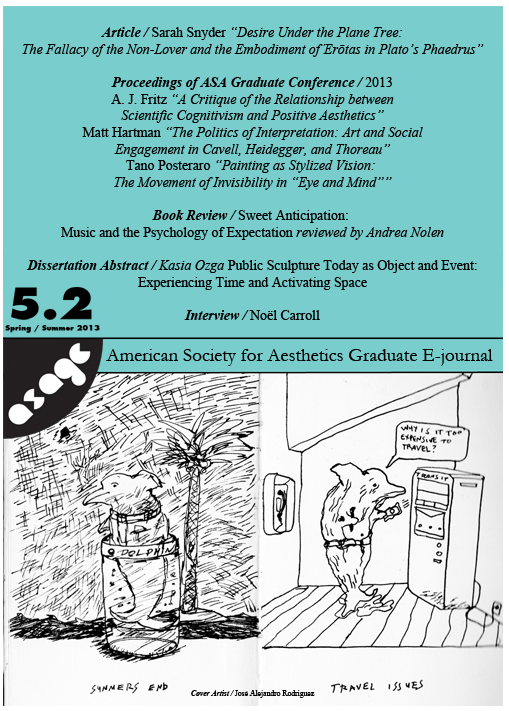 From 2012-2014 I served as the Managing Editor of ASAGE, the American Society of Aesthetics Graduate E-journal. One of my many duties was conceiving the look and layout of the cover.